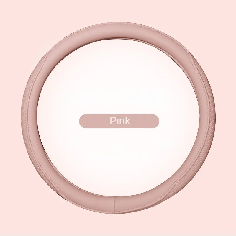 Embossed PU Leather Steering Wheel Cover – Non-Slip Breathable Universal 15 Inch (38cm) O & D Shape