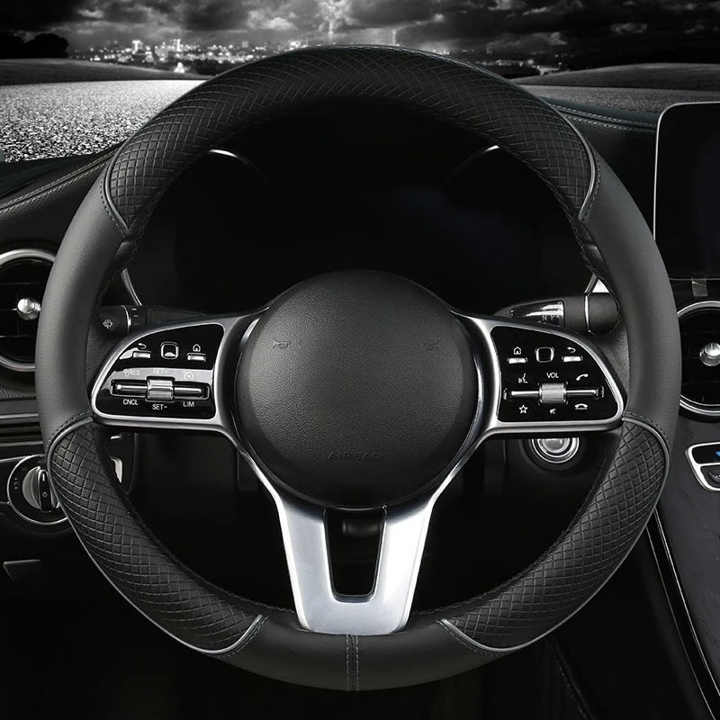 All-Season Leather Diamond Steering Wheel Cover – Universal 14.5–15 Inch (38cm) Anti-Slip Grip